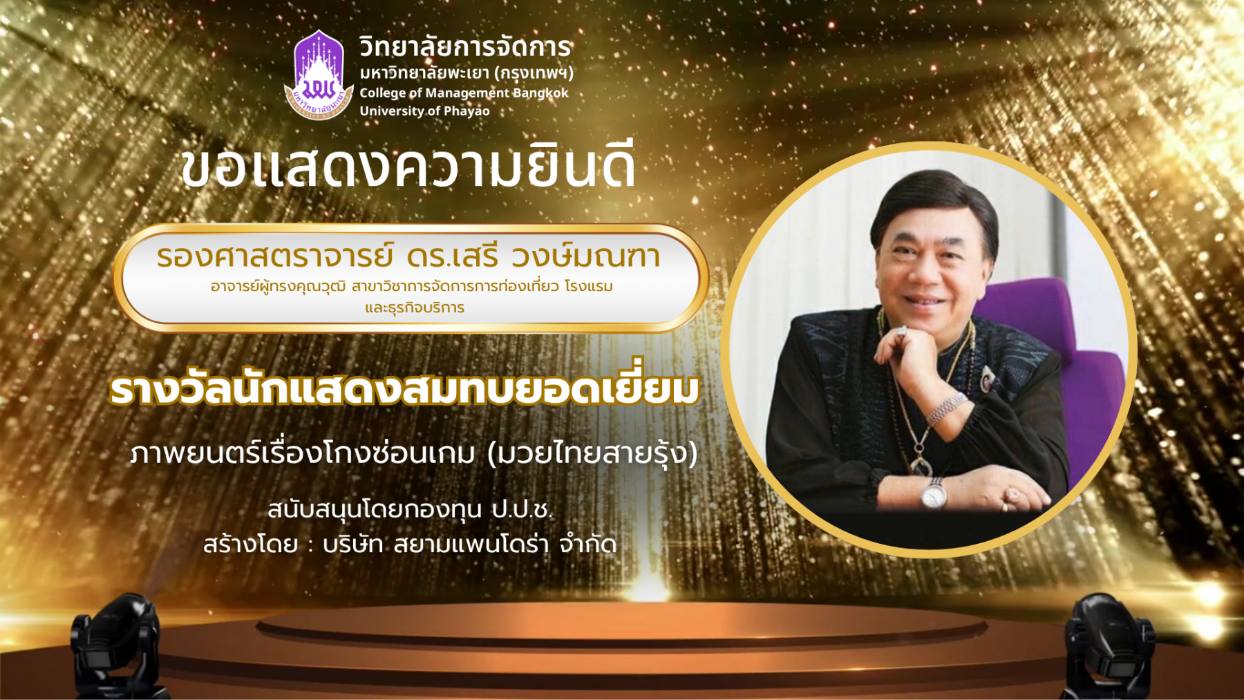 🎉 ขอแสดงความยินดีกับ รองศาสตราจารย์ ดร.เสรี วงษ์มณฑา 🏆ได้รับ รางวัลนักแสดงสมทบยอดเยี่ยม 🏆 จากภาพยนตร์เรื่อง “โกงซ่อนเกม (มวยไทยสายรุ้ง)”