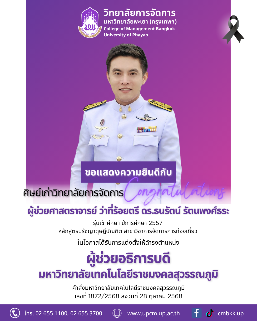 ขอแสดงความยินดีกับศิษย์เก่าปริญญาเอก 🎊 ในโอกาสได้รับการแต่งตั้งให้ดำรงตำแหน่ง 👉ผู้ช่วยอธิการบดี มหาวิทยาลัยเทคโนโลยีราชมงคลสุวรรณภูมิ