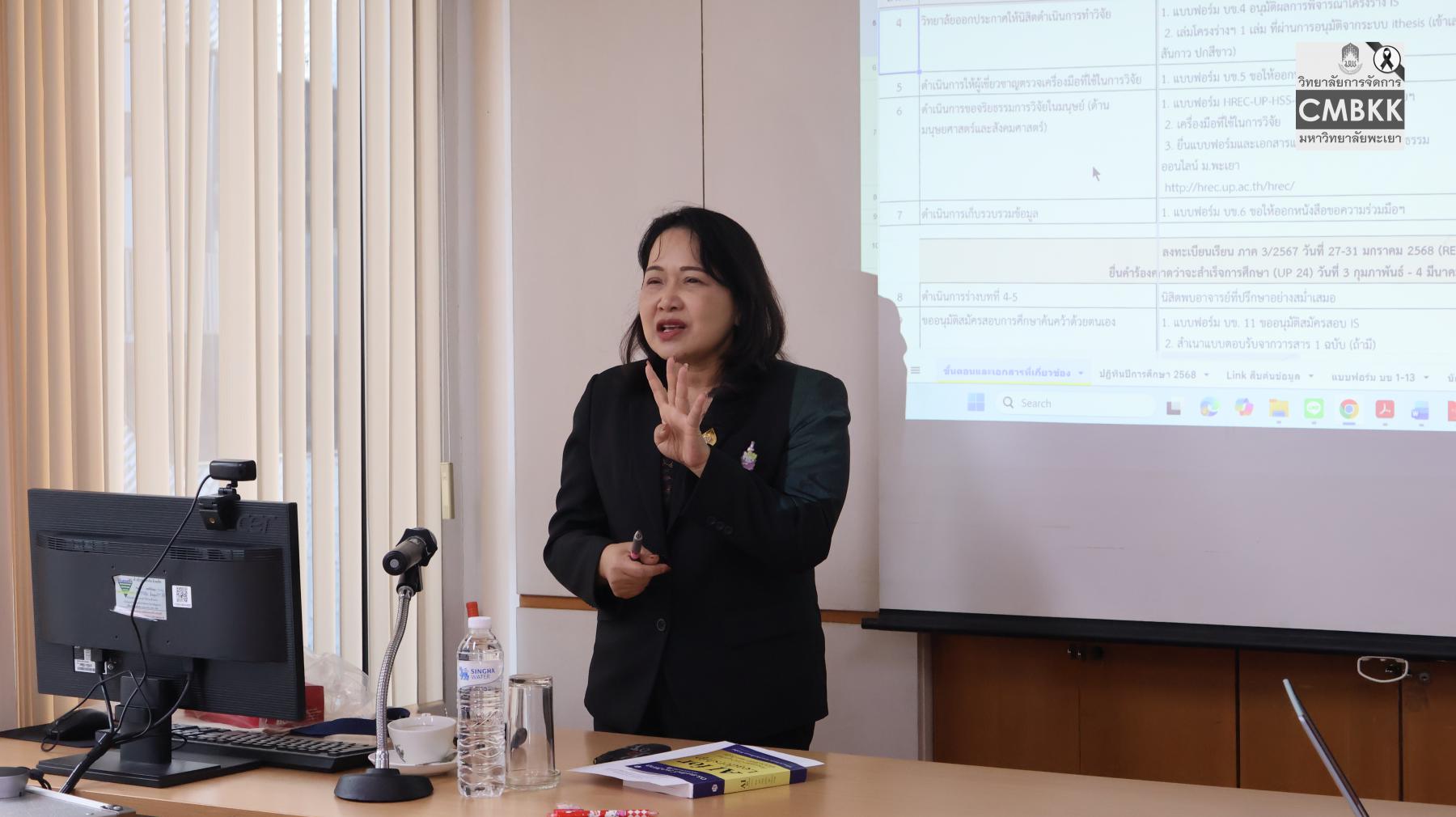 วันอาทิตย์ที่ 14 ธันวาคม 2568 วิทยาลัยการจัดการ มหาวิทยาลัยพะเยา นำโดย ผู้ช่วยศาสตราจารย์ ดร.ศิริพร แพรศรี รักษาการแทนรองคณบดีวิทยาลัยการจัดการ พร้อมด้วยคณาจารย์ประจำหลักสูตร จัดโครงการพัฒนาศักยภาพนิสิตระดับบัณฑิตศึกษาด้านวิชาการและการวิจัย ในกิจกรรมการติดตามความก้าวหน้าวิทยานิพนธ์และการศึกษาค้นคว้าด้วยตนเอง