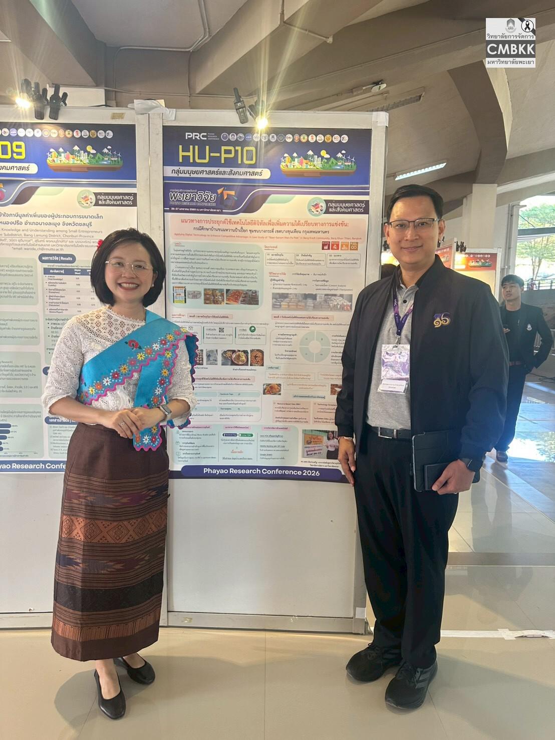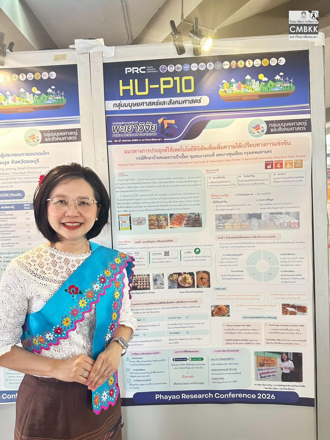 วันอังคารที่ 27 มกราคม 2569 อาจารย์ ดร.วสพร ตันประเสริฐ อาจารย์ประจำหลักสูตรบริหารธุรกิจมหาบัณฑิต วิทยาลัยการจัดการ มหาวิทยาลัยพะเยา นำเสนอผลงานวิจัยภาคโปสเตอร์ (Poster Presentation) ในการประชุมวิชาการระดับชาติพะเยาวิจัย ครั้งที่ 15 กลุ่มมนุษยศาสตร์และสังคมศาสตร์ โดยร่วมนำเสนอผลงานวิจัย เรื่อง แนวทางการประยุกต์ใช้เทคโนโลยีดิจิทัลเพื่อเพิ่มความได้เปรียบทางการแข่งขัน: กรณีศึกษาบ้านขนมหวานป้าเปี๊ยก ชุมชนบางกระดี่ เขตบางขุนเทียน กรุงเทพมหานคร (Applying digital technology to enhance competitive advantage: A case study of “Baan Kanom Wan Pa Piek” in Bang Kradi Community, Bang Khun Thian District, Bangkok) ณ ชั้น 2 อาคาร 99 ปี พระอุบาลีคุณูปมาจารย์ (ปวง ธมฺมปญฺโญ) มหาวิทยาลัยพะเยา