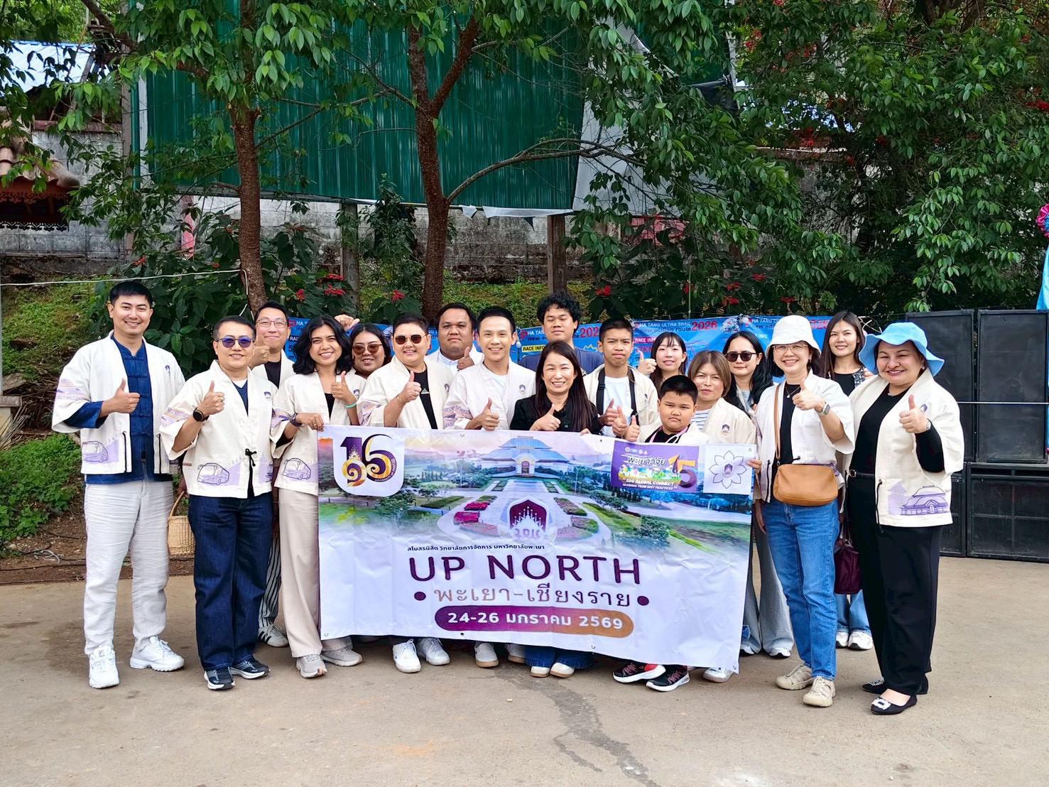 วันที่ 24–26 มกราคม พ.ศ. 2569 สโมสรนิสิตวิทยาลัยการจัดการ นำโดย ดร.จิรัฏฐวัฒน์ ศิริบุตร ประธานสโมสรนิสิต พร้อมด้วยคณะกรรมการสโมสรนิสิตฯ ได้จัดกิจกรรม UP NORTH พะเยา–เชียงราย ประจำปี พ.ศ. 2569 โดยมี ดร.ณัฐรินทร์ ปริวงศ์กุลธร อาจารย์ประจำหลักสูตรศิลปศาสตรมหาบัณฑิต สาขาวิชาการจัดการการท่องเที่ยว โรงแรม และธุรกิจบริการ และดร.วสพร ตันประเสริฐ อาจารย์ประจำหลักสูตรบริหารธุรกิจมหาบัณฑิต (อาจารย์ที่ปรึกษาสโมสรนิสิต) พร้อมด้วยศิษย์เก่าและนิสิตปัจจุบัน เข้าร่วมกิจกรรม ทั้งนี้ ผู้เข้าร่วมกิจกรรมได้เข้าร่วมงาน “การประชุมวิชาการระดับชาติพะเยาวิจัย ครั้งที่ 15 : ขับเคลื่อน SDGs เชื่อมเครือข่ายวิชาการสู่การพัฒนาที่ยั่งยืน” ณ ชั้น 2 อาคาร 99 ปี พระอุบาลีคุณูปมาจารย์ (ปวง ธมฺมปญฺโญ) มหาวิทยาลัยพะเยา วัตถุประสงค์เพื่อพัฒนาศักยภาพของผู้เข้าร่วมในการเชื่อมโยงองค์ความรู้ไปสู่การจัดการเรียนการสอนและการ