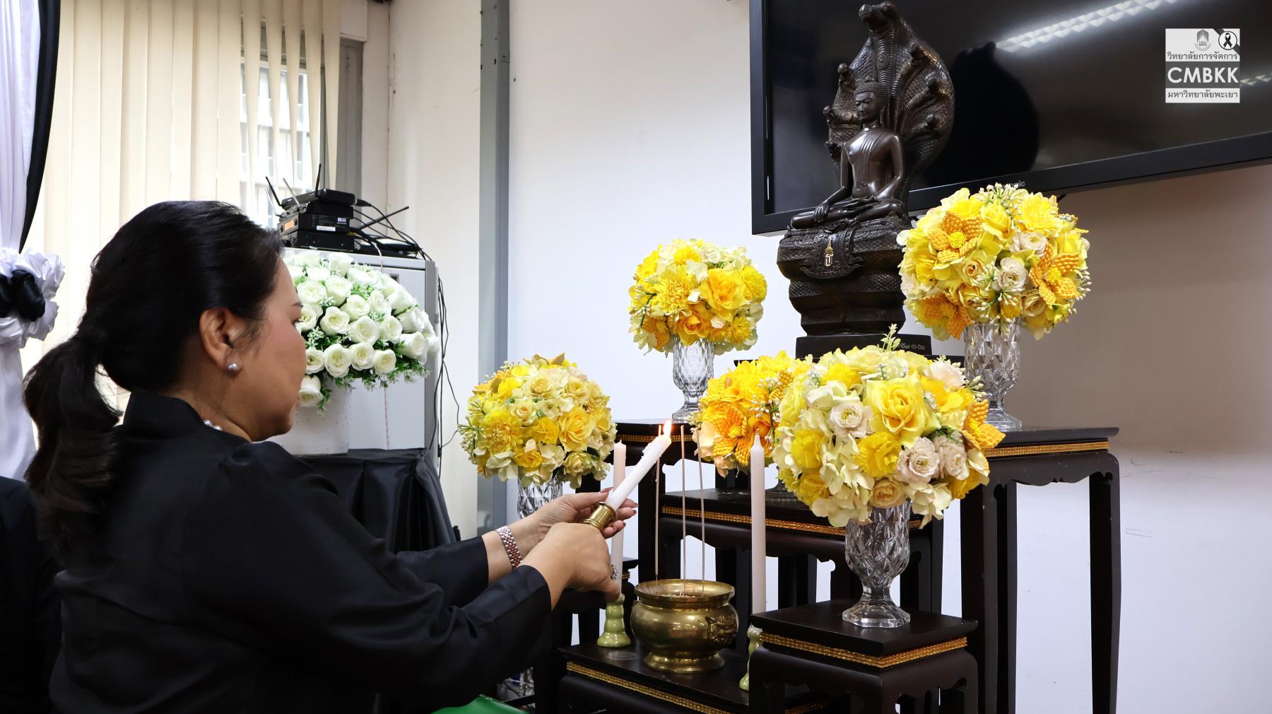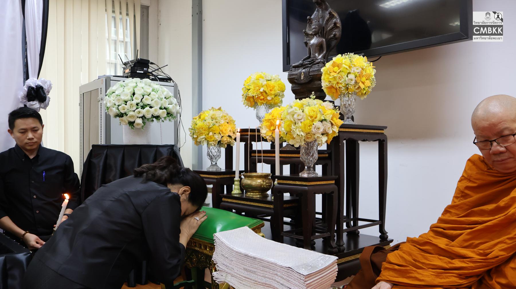วันเสาร์ที่ ๓๑ มกราคม พ.ศ. ๒๕๖๙ เวลา ๑๓.๓o น. วิทยาลัยการจัดการ มหาวิทยาลัยพะเยา จัดพิธีบำเพ็ญกุศลแด่สมเด็จพระนางเจ้าสิริกิติ์ พระบรมราชินีนาถ พระบรมราชชนนีพันปีหลวง ในวาระครบ ๑oo วัน (สตมวาร) แห่งการสวรรคต โดย นิมนต์พระสงฆ์ ๑o รูป จากวัดธรรมมงคล เขตพระโขนง กรุงเทพฯ ผู้ช่วยศาสตราจารย์ ดร.ศิริพร แพรศรี รักษาการแทนรองคณบดีวิทยาลัยการจัดการ เป็นประธานจุดธูปเทียนบูชาพระรัตนตรัย และจุดเครื่องทองน้อยเบื้องหน้าพระฉายาลักษณ์ พร้อมนำคณาจารย์ บุคลากร และนิสิต ร่วมทอดผ้าบังสุกุลและถวายจตุปัจจัยไทยธรรมแด่พระสงฆ์ จำนวน ๑o รูป เพื่อน้อมรำลึกในพระมหากรุณาธิคุณอันหาที่สุดมิได้ของสมเด็จพระนางเจ้าสิริกิติ์ พระบรมราชินีนาถ พระบรมราชชนนีพันปีหลวง ผู้ทรงเป็น “แม่ของแผ่นดิน” ที่ได้ทรงปฏิบัติพระราชกรณียกิจนานัปการเพื่อประโยชน์สุขของพสกนิกรชาวไทยตลอดพระชนม์ชีพ ณ ห้อง R๘o๕ วิทยาลัยการจัดการ มหาวิทยาลัยพะเยา อาคารเวฟเพล ชั้น ๘ กรุงเทพมหานคร