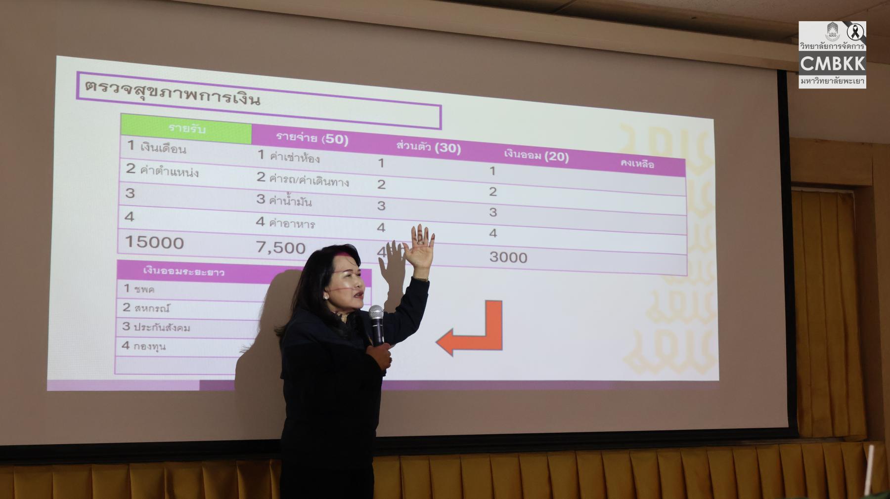 จากนั้น เป็นการบรรยายในหัวข้อ “Beyond Saving with Happy Money” โดย ผู้ช่วยศาสตราจารย์ ดร.ศิริพร แพรศรี เพื่อเสริมสร้างความรู้ ความเข้าใจด้านการวางแผนการเงิน และการบริหารจัดการรายได้อย่างมีความสุข อันจะนำไปสู่คุณภาพชีวิตที่ดีและความมั่นคงของบุคลากรในระยะยาว