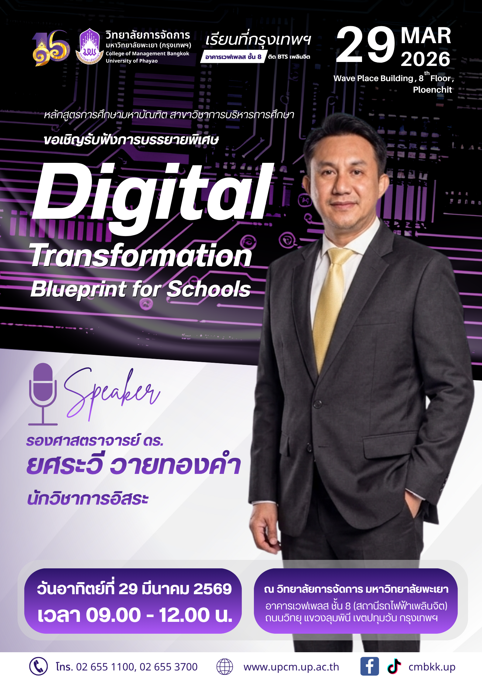 หลักสูตรการศึกษามหาบัณฑิต สาขาวิชาการบริหารการศึกษา ขอเชิญร่วมรับฟังการบรรยายพิเศษในหัวข้อ ✨ “Digital Transformation Blueprint for Schools” แนวทางการขับเคลื่อนสถานศึกษาสู่ยุคดิจิทัลอย่างเป็นระบบ