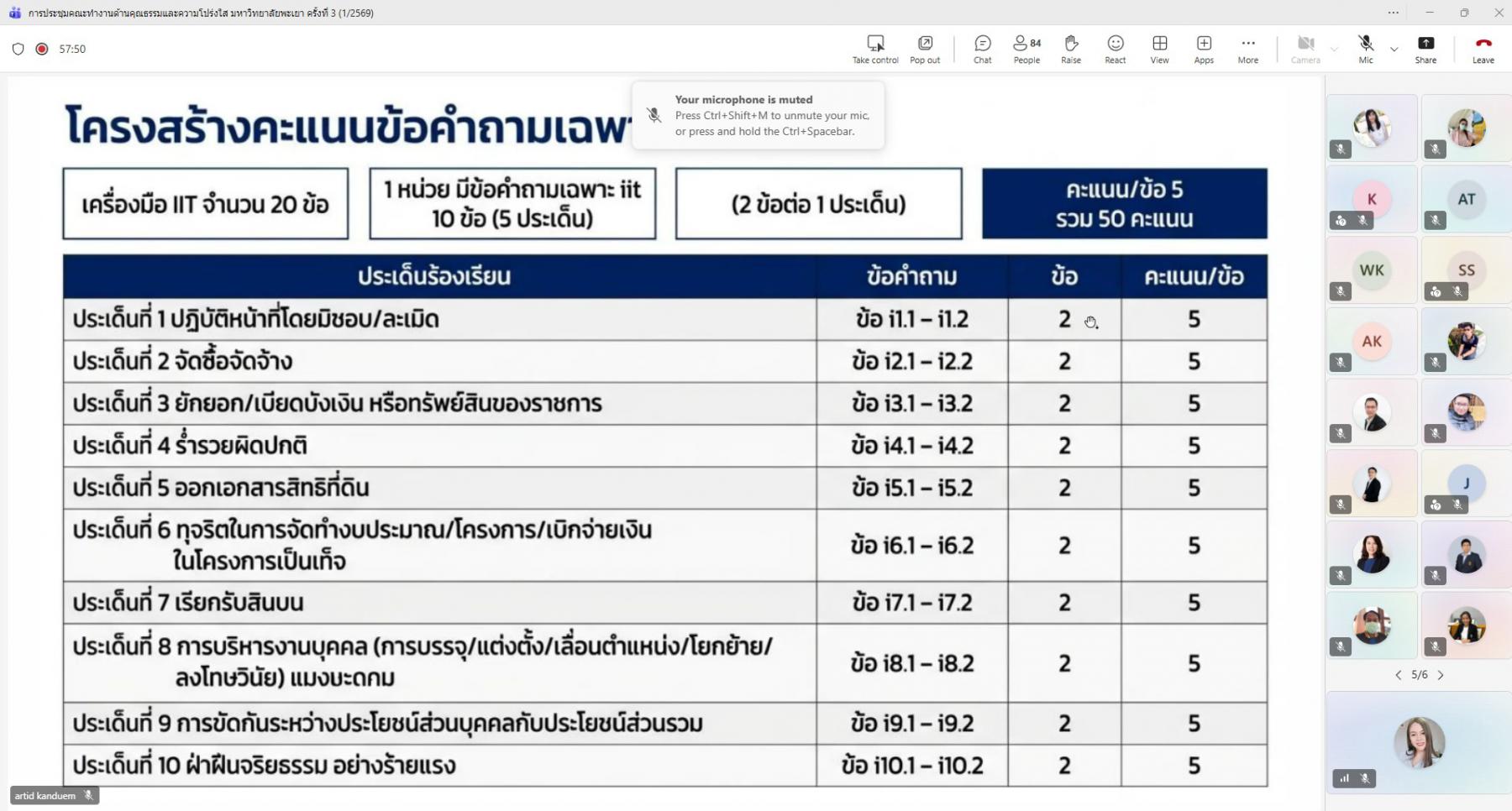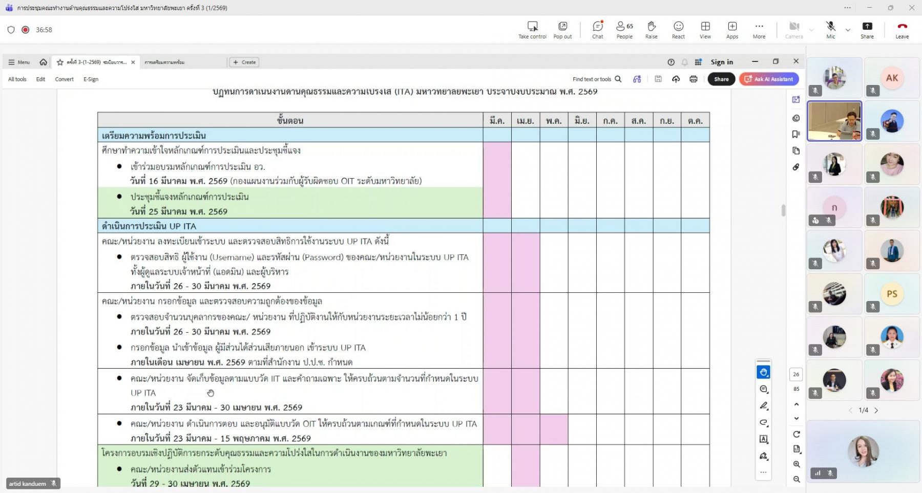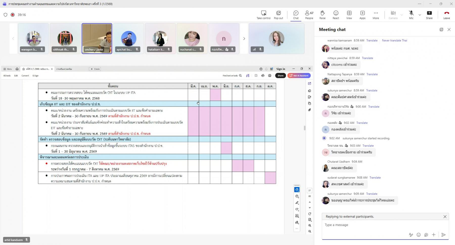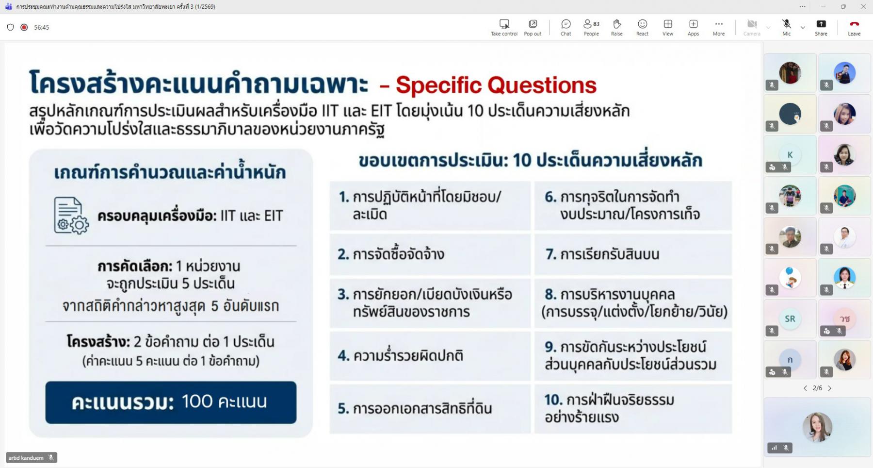 การประชุมจัดขึ้นในรูปแบบออนไลน์ผ่านระบบ Microsoft Teams โดยมีกองแผนงาน งานสนับสนุนการบริหารความเสี่ยงและความโปร่งใส เป็นหน่วยงานหลักในการรับผิดชอบการติดตาม กำกับ และประเมินผลการดำเนินงาน เพื่อให้การขับเคลื่อนองค์กรเป็นไปตามหลักธรรมาภิบาล มีความโปร่งใส ตรวจสอบได้ และสอดคล้องกับเกณฑ์การประเมินในระดับชาติอย่างมีประสิทธิภาพและยั่งยืน