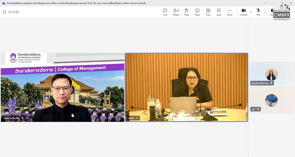 ในการนี้ ดร.ณัฐรินทร์ ปริวงศ์กุลธร อาจารย์ประจำสาขาวิชาการจัดการการท่องเที่ยว โรงแรม และธุรกิจบริการ และ ดร.วสพร ตันประเสริฐ อาจารย์ประจำสาขาบริหารธุรกิจ ซึ่งเป็นผู้ผ่านการเข้าร่วมโครงการฝึกอบรมผู้ประเมินคุณภาพการศึกษาภายใน (Assessor Training) ระหว่างวันที่ 1–2 เมษายน 2569 ณ มหาวิทยาลัยพะเยา จังหวัดพะเยา มาแลกเปลี่ยนเรียนรู้และถ่ายทอดความเข้าใจเกี่ยวกับกระบวนการประเมินคุณภาพการศึกษาตามเกณฑ์ AUN-QA รวมถึงการแลกเปลี่ยนประสบการณ์และแนวทางการจัดทำรายงานการประเมินตนเองระดับหลักสูตร (SAR) เพื่อยกระดับคุณภาพหลักสูตรให้เป็นไปตามมาตรฐานสากล ณ ห้องประชุม L806 วิทยาลัยการจัดการ มหาวิทยาลัยพะเยา อาคารเวฟเพลส ชั้น 8 กรุงเทพมหานคร