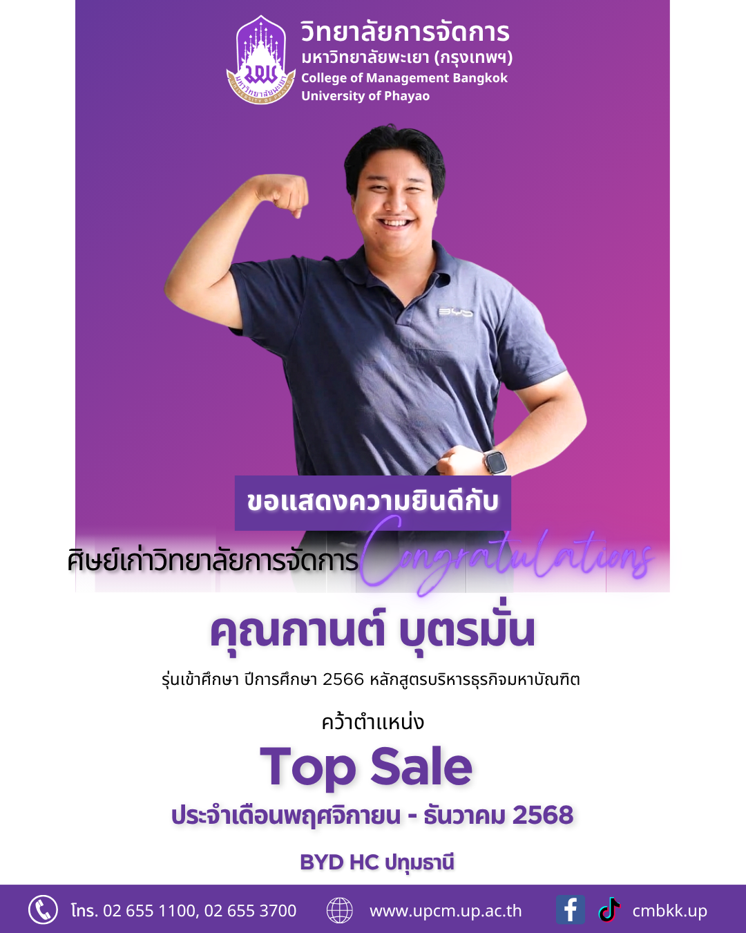 ขอแสดงความยินดีกับศิษย์เก่าปริญญาโท คว้าตำแหน่ง 🏆 👉Top Sale ประจำเดือนพฤศจิกายน - ธันวาคม 2568 รถยนต์ BYD HC ปทุมธานี