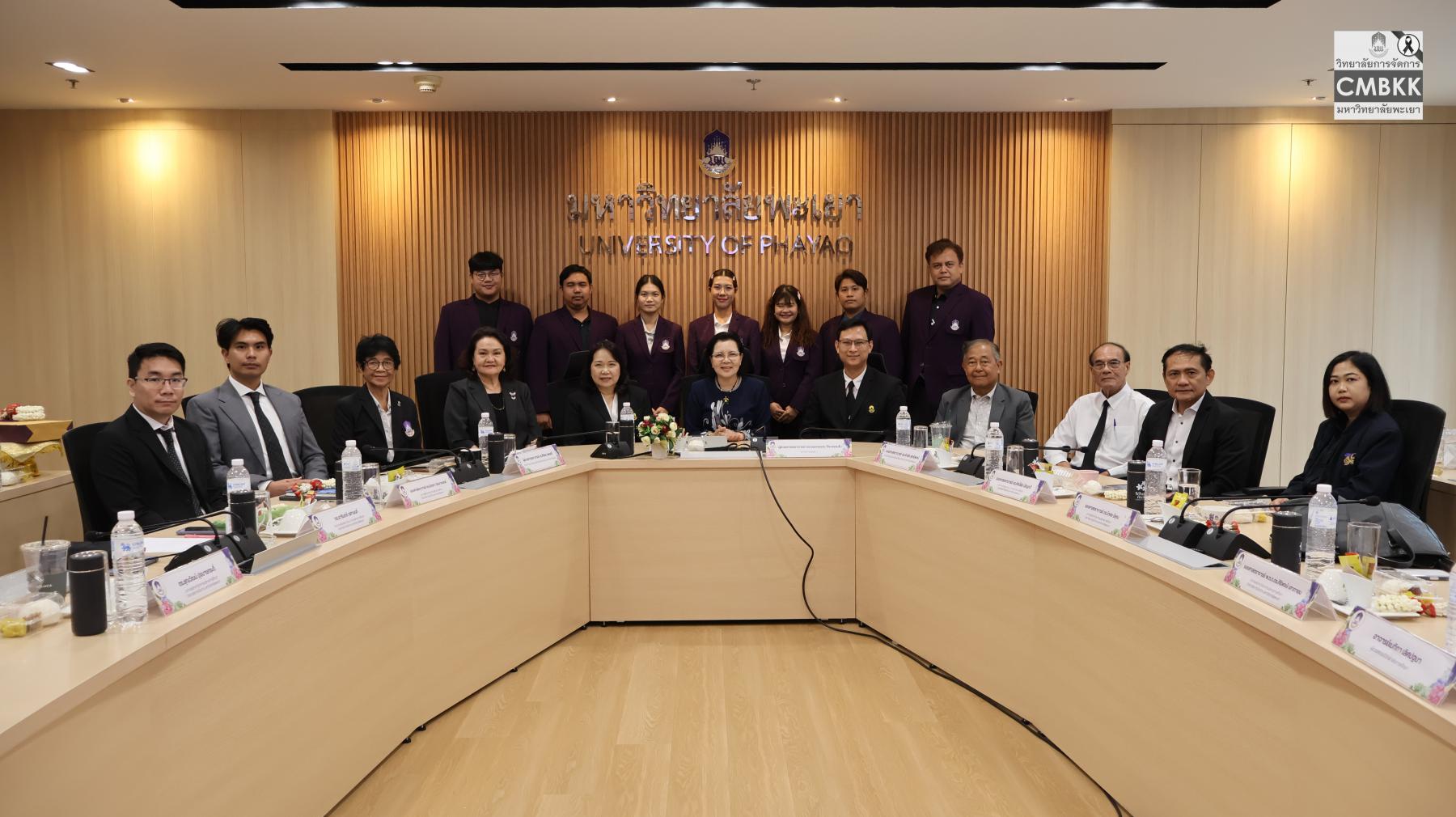 วันที่ 25 เมษายน 2569 วิทยาลัยการจัดการ มหาวิทยาลัยพะเยา จัดสัมมนาวิชาการสำหรับนิสิตระดับบัณฑิตศึกษา เพื่อเสริมสร้างองค์ความรู้และมุมมองด้านการบริหารการศึกษาให้สอดคล้องกับบริบทสังคมไทยที่เปลี่ยนแปลงอย่างรวดเร็ว โดยมี รองศาสตราจารย์ ดร.รักษิต สุทธิพงษ์ รักษาการแทนคณบดีวิทยาลัยการจัดการ และผู้ช่วยศาสตราจารย์ ดร.ศิริพร แพรศรี รักษาการแทนรองคณบดีวิทยาลัยการจัดการ พร้อมด้วยคณาจารย์ประจำสาขาวิชาการบริหารการศึกษา และนิสิตหลักสูตรการศึกษามหาบัณฑิต สาขาวิชาการบริหารการศึกษา ชั้นปีที่ 1 และชั้นปีที่ 2 ให้การต้อนรับ ผู้ช่วยศาสตราจารย์ ดร.อมลวรรณ วีระธรรมโม เลขาธิการ คุรุสภา และผู้ช่วยศาสตราจารย์ ดร.สหวรัชญ์ พลหาญ ผู้อำนวยการ สถาบันวิจัยเพื่อความเสมอภาคทางการศึกษา เข้าร่วมกิจกรรมดังกล่าว ณ ห้องประชุม L806 วิทยาลัยการจัดการ อาคารเวฟเพลส ชั้น 8 กรุงเทพมหานคร